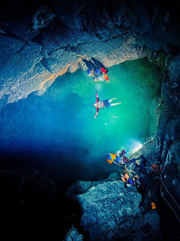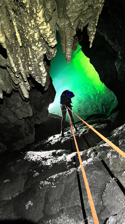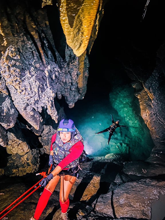 Rapel, flutuação e escalada na Caverna Lago Suspenso
